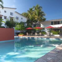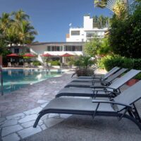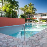 The spacious living area opens onto a private balcony where you can enjoy lush garden views and a glimpse of the ocean beyond. A kitchen with a breakfast bar and appliances makes dining at home easy and convenient. Both bedrooms are designed for comfort, with ample storage and direct access to bathrooms.